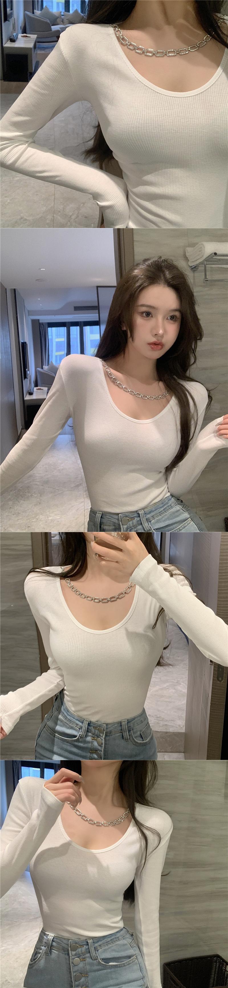 ホワイトTシャツ サマーチェーン ショートトップス ロング 夏物 ステッチ フラワークラフター18362125029