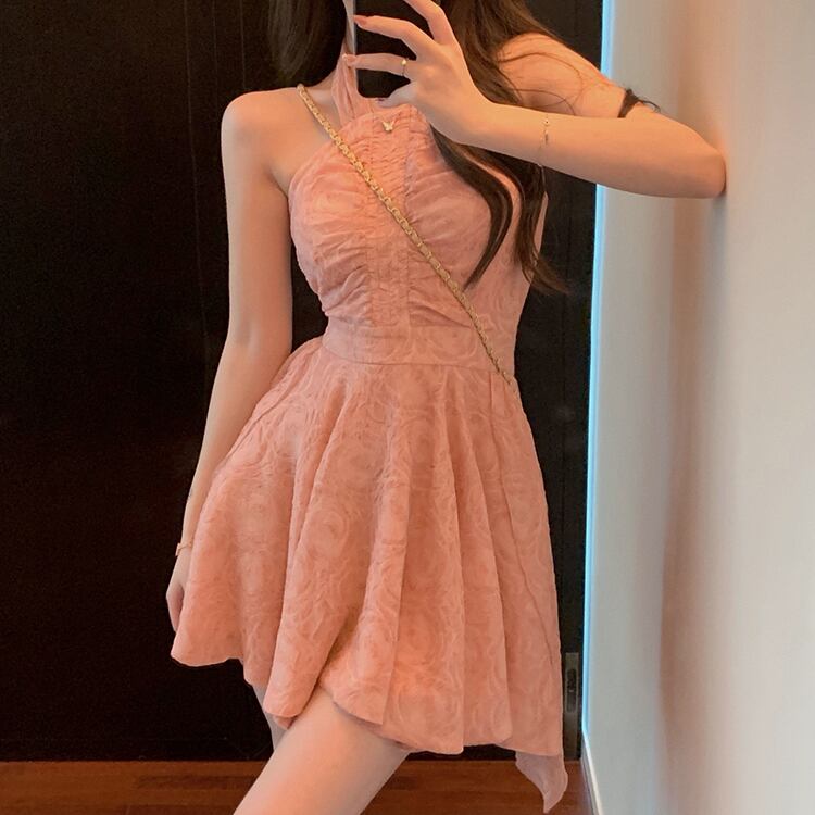 ホルタードレス サマーウェスト薄手ショートスカート ピンク 夏物 フラワークラフター56563900473