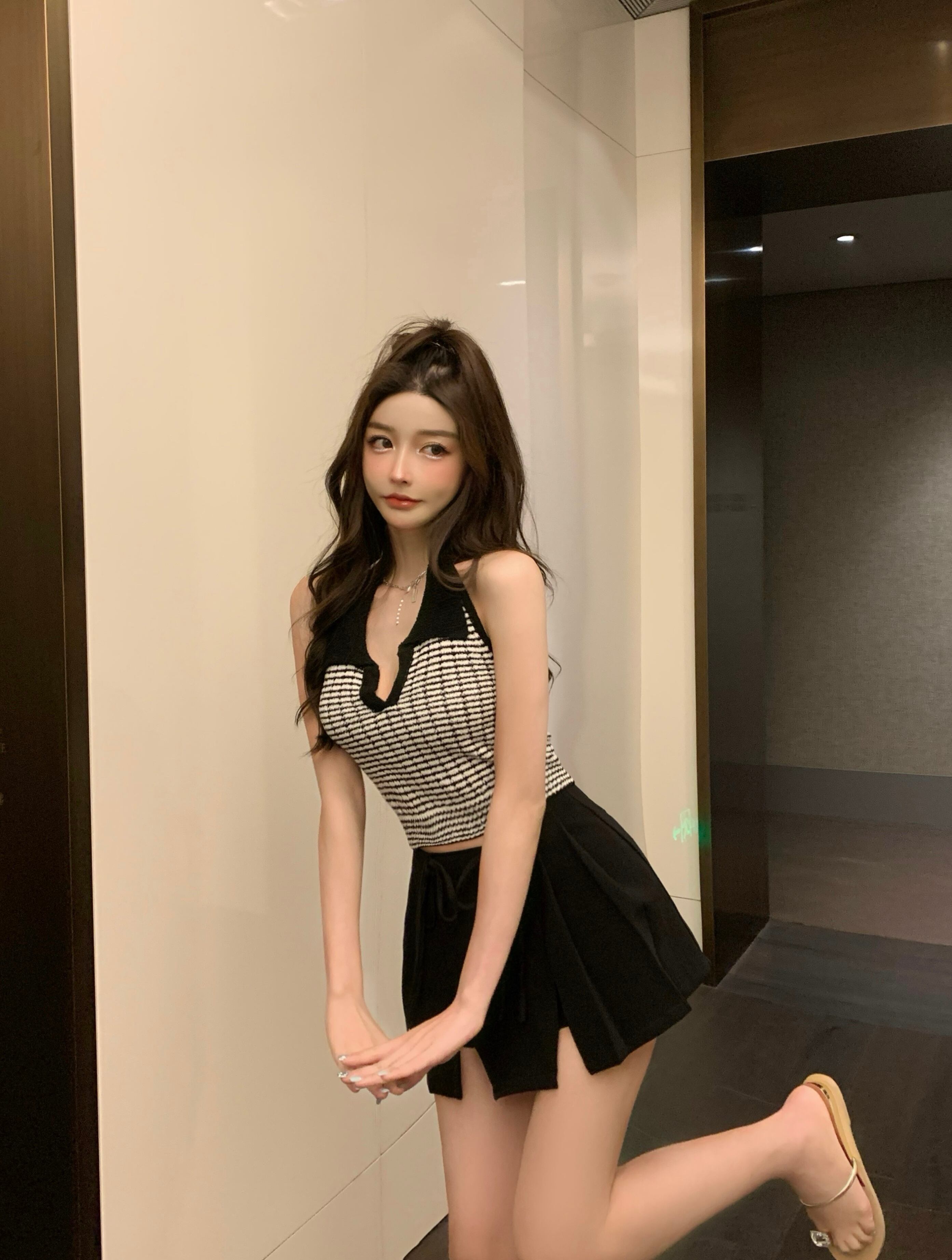 色:ホルタートップシングルピース,シングルプリーツスカート