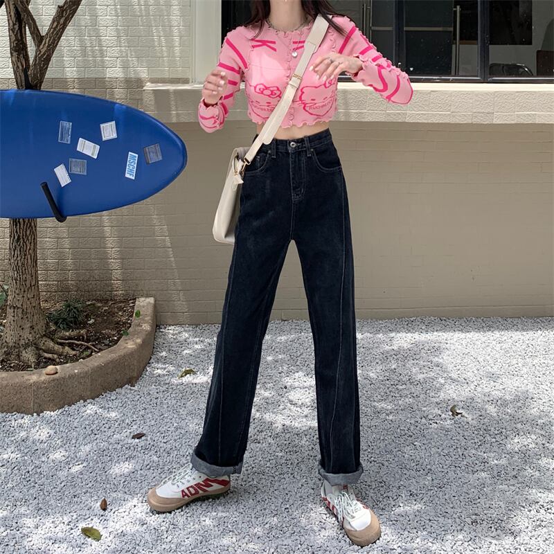 ジーンズ オータムスタイルスタンダードハイウェストウェスト薄手パンツ レトロ 秋物 フラワークラフター17795629838