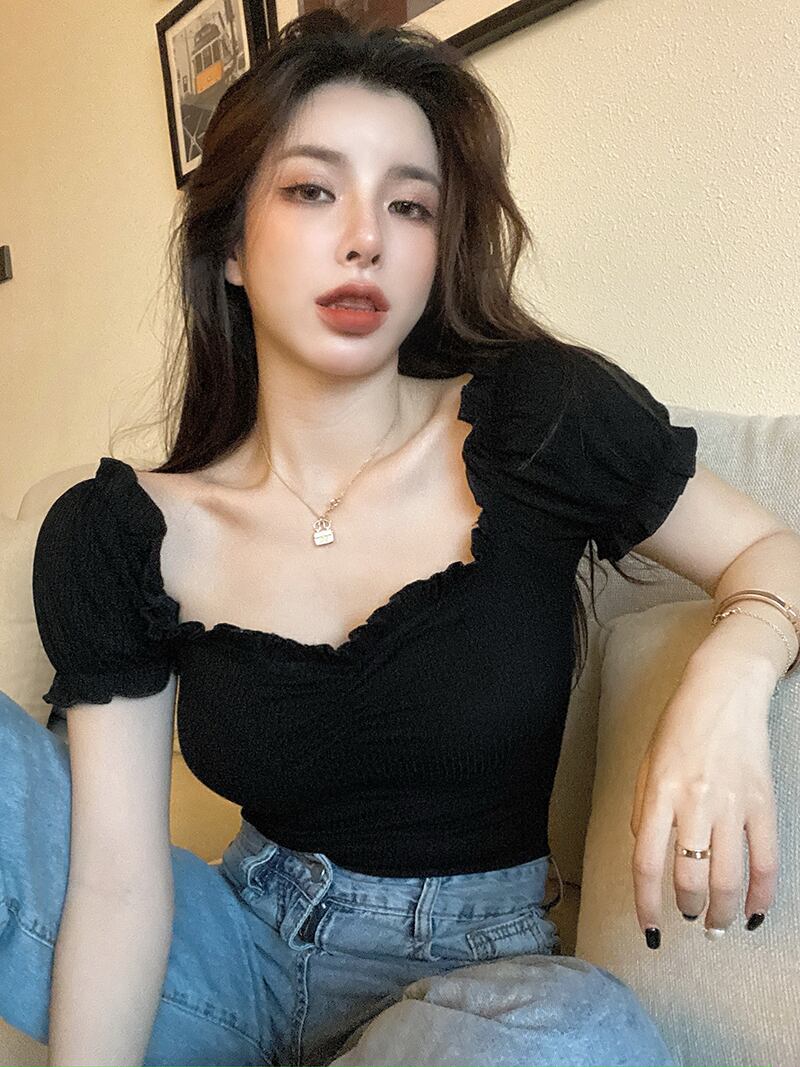 Tシャツ シャツ レディースサマーカラースリムブラック 夏物 フラワークラフター53947516678
