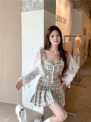 色:スリングシングルピース,短いスカート,カーディガンワンピース