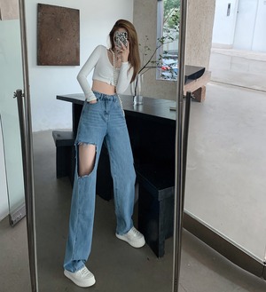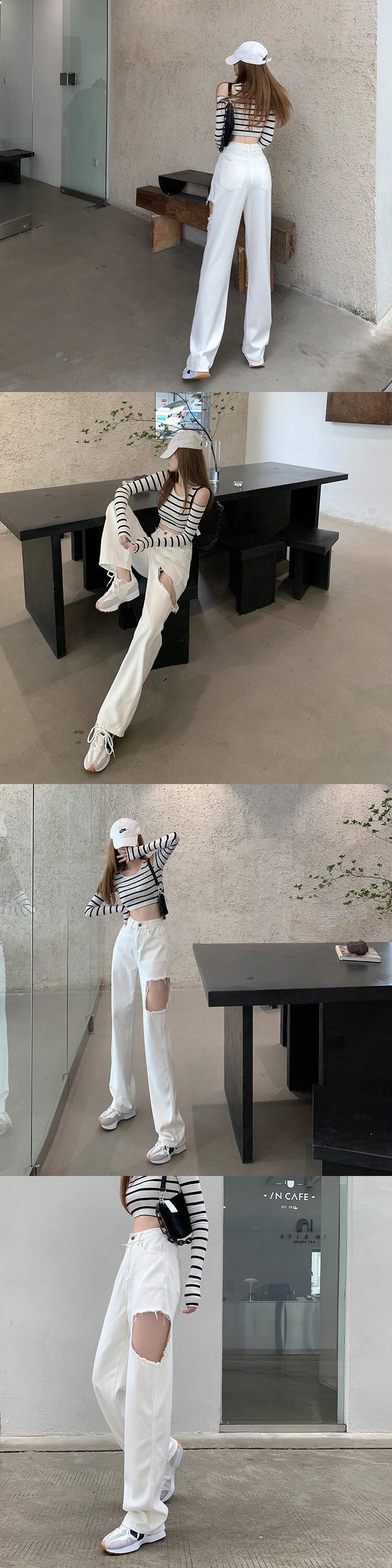 ホワイトジーンズ ルーズサマー薄手ハイウェストウェストワイドレッグロングパンツ 夏物 ワイドパンツ フラワークラフター3487040941