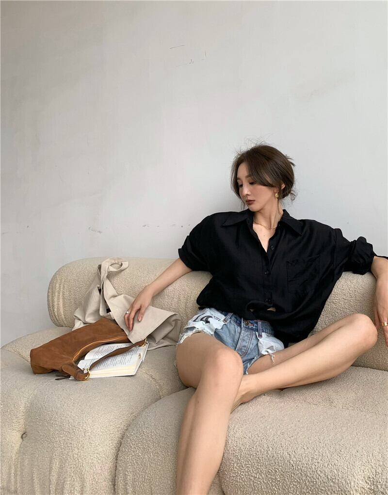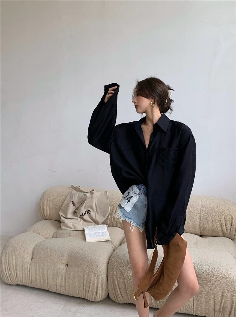 ブラックシャツ ジャケット サマー薄手ルーズトップス ロング 夏物 フラワークラフター47231358125
