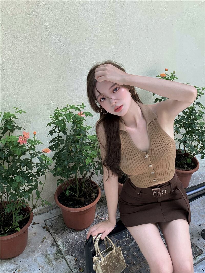 色:ホルターベストの一枚,ブラウンハーフスカートワンピース