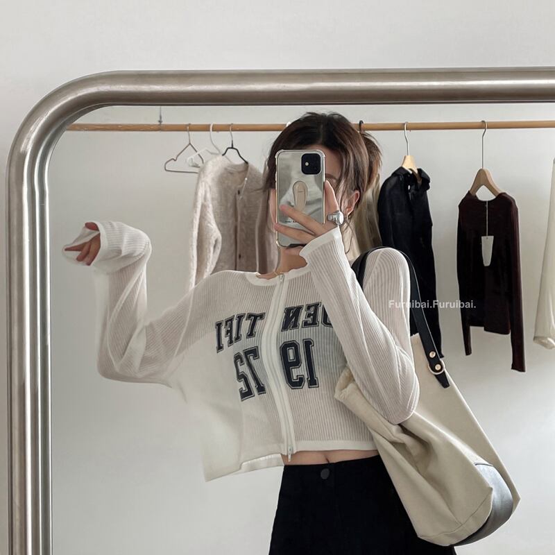 ニットTシャツ サマー薄手プリントショートカーディガントップス ロング 夏物 フラワークラフター41232633294