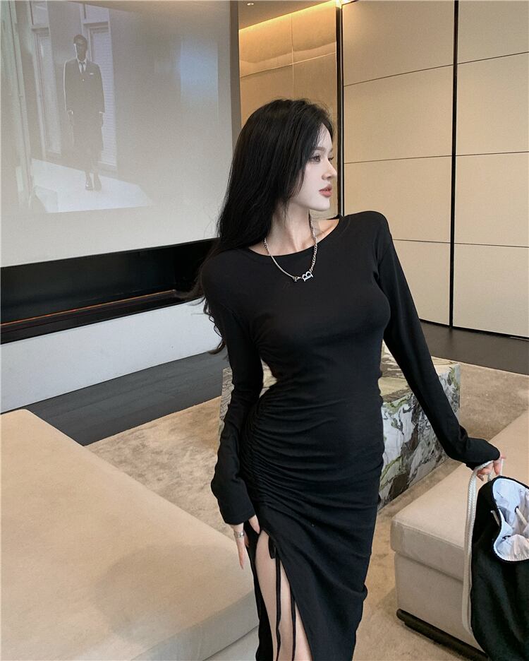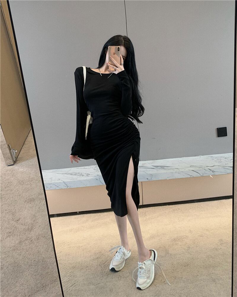 ブラックドレス オータムギャザースカート ロング 秋物 フラワークラフター79533110110