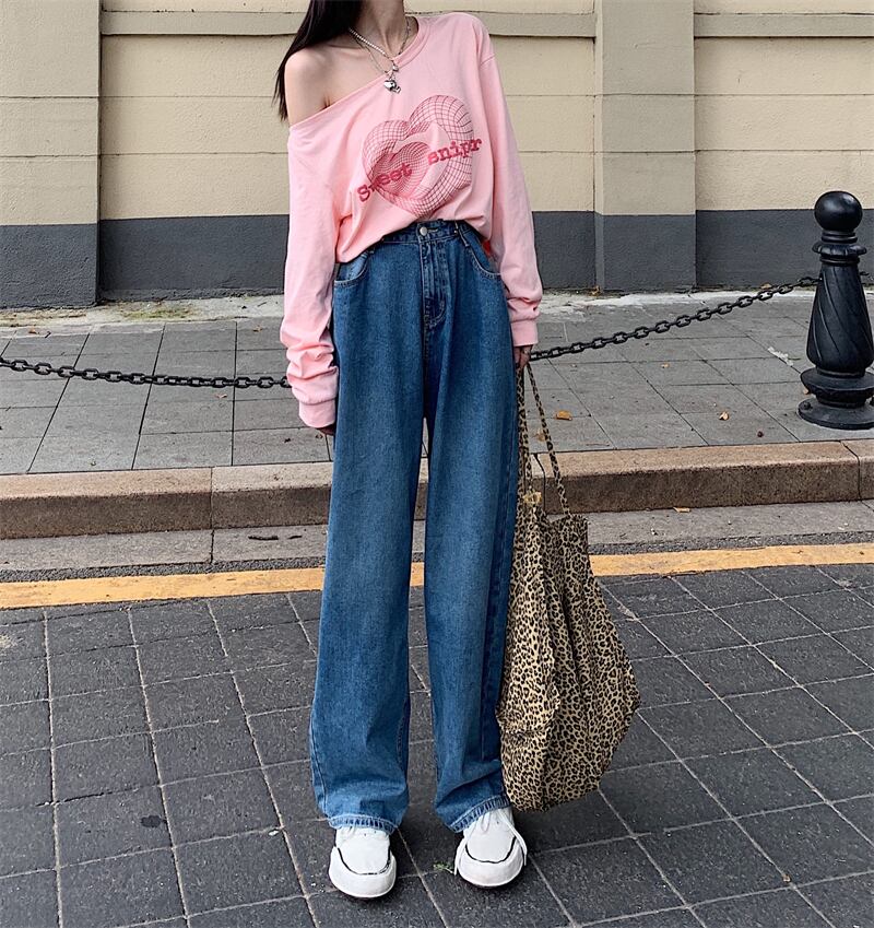 スタンダードハイウェストジーンズ オータムルーズ薄手ロングパンツ レトロ 秋物 フラワークラフター51481140353