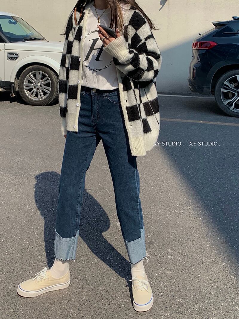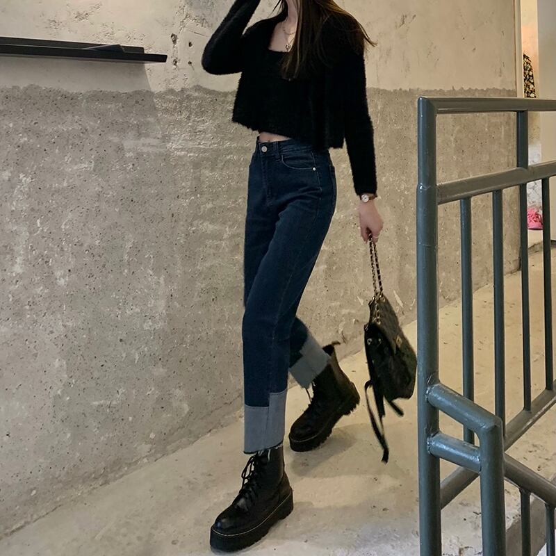 スタンダードジーンズ オータムハイウェストウェスト薄手パンツ レトロ 秋物 フラワークラフター59362002252