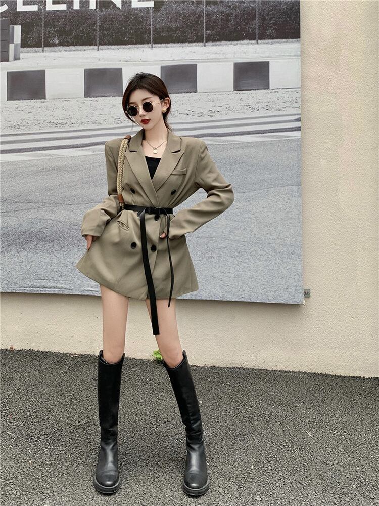色:カードグリーンスーツワンピース,シングルブラックベルト