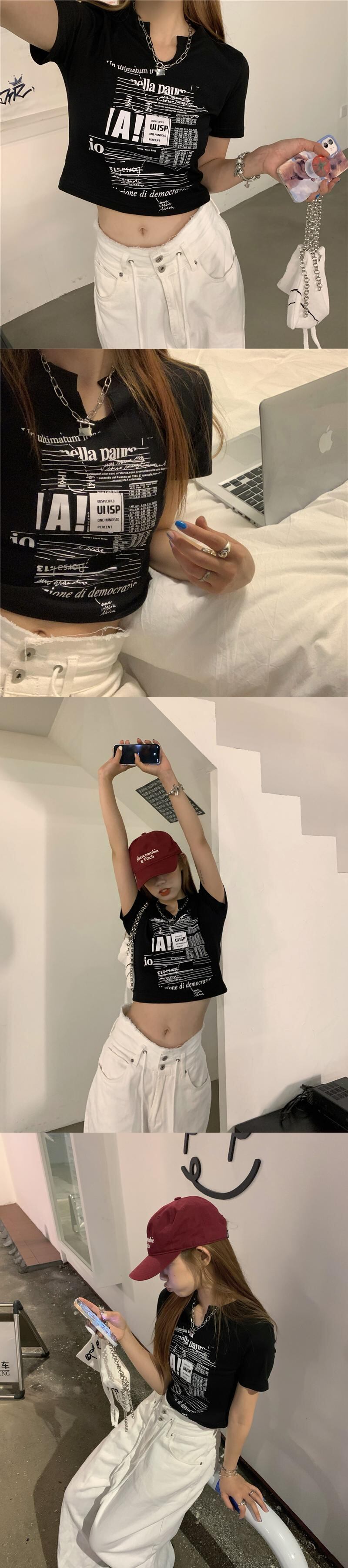 ホワイトショートTシャツ サマープリント柄スリムクロップトップ トップス 夏物 フラワークラフター33421007198