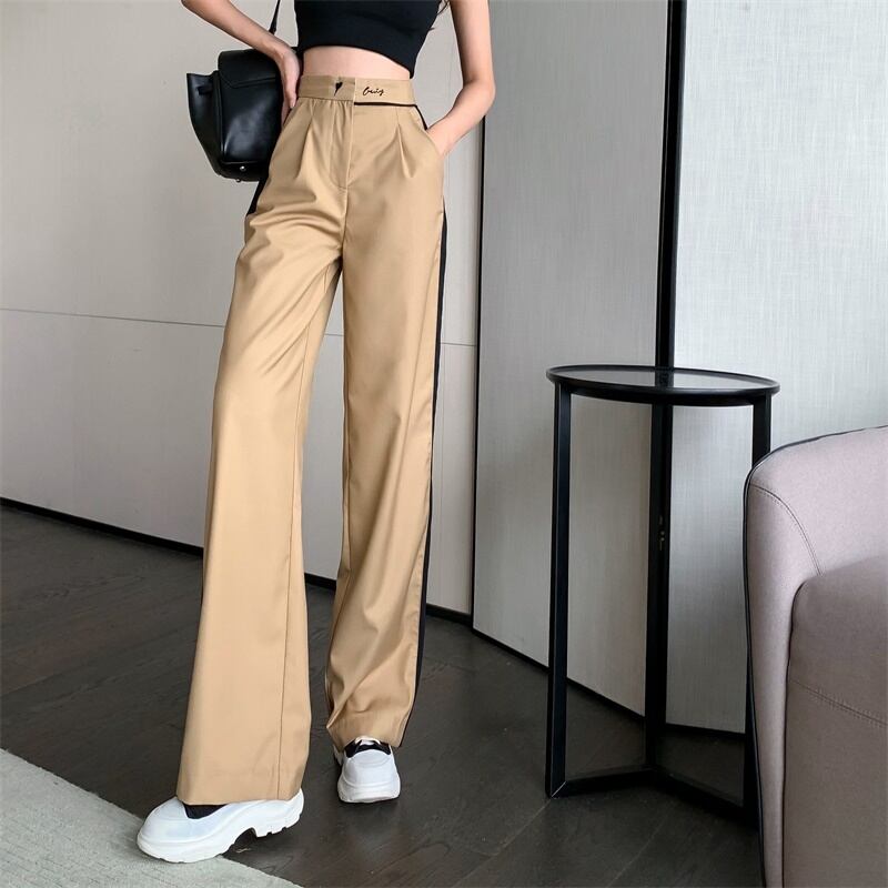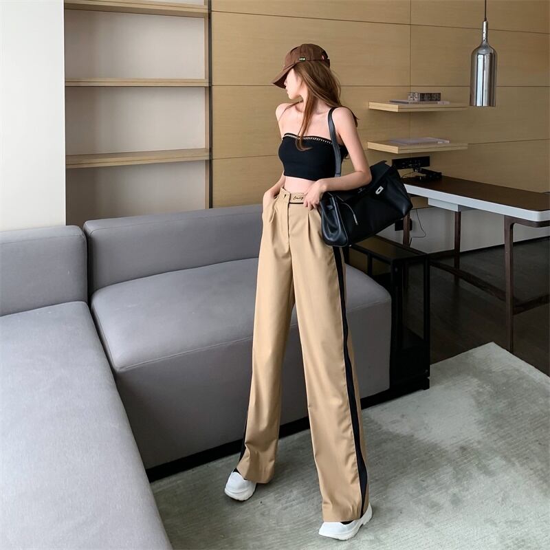 カラーストライプカジュアルパンツ ルーズサマーハイウェストウェストワイドレッグ 夏物 ワイドパンツ フラワークラフター60373948132