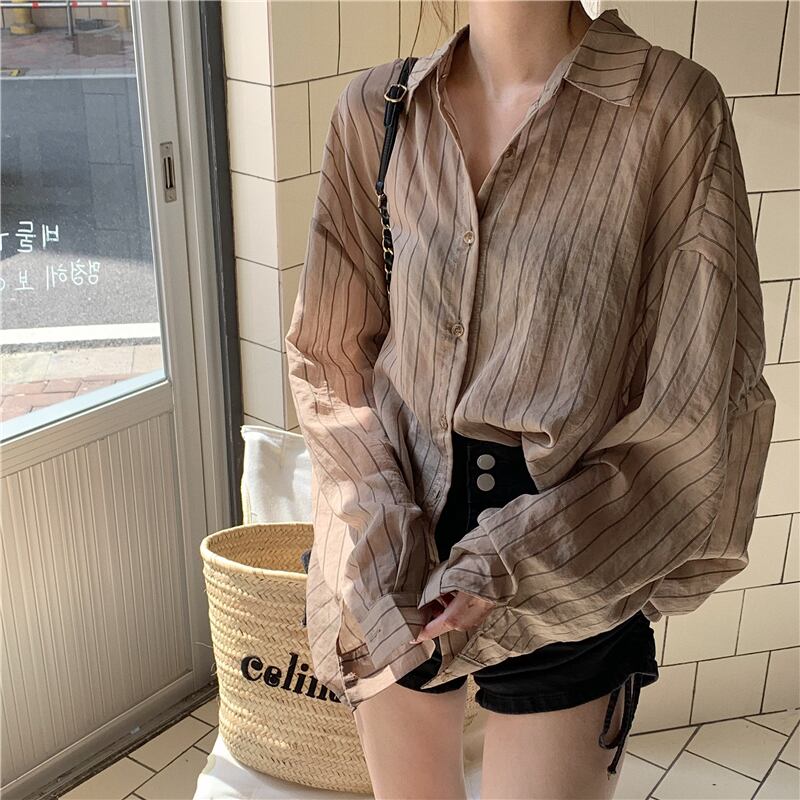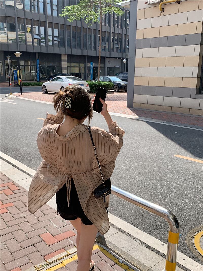 ストライプシャツ ジャケット サマー薄手レッドトップス ロング 夏物 フラワークラフター46433066839