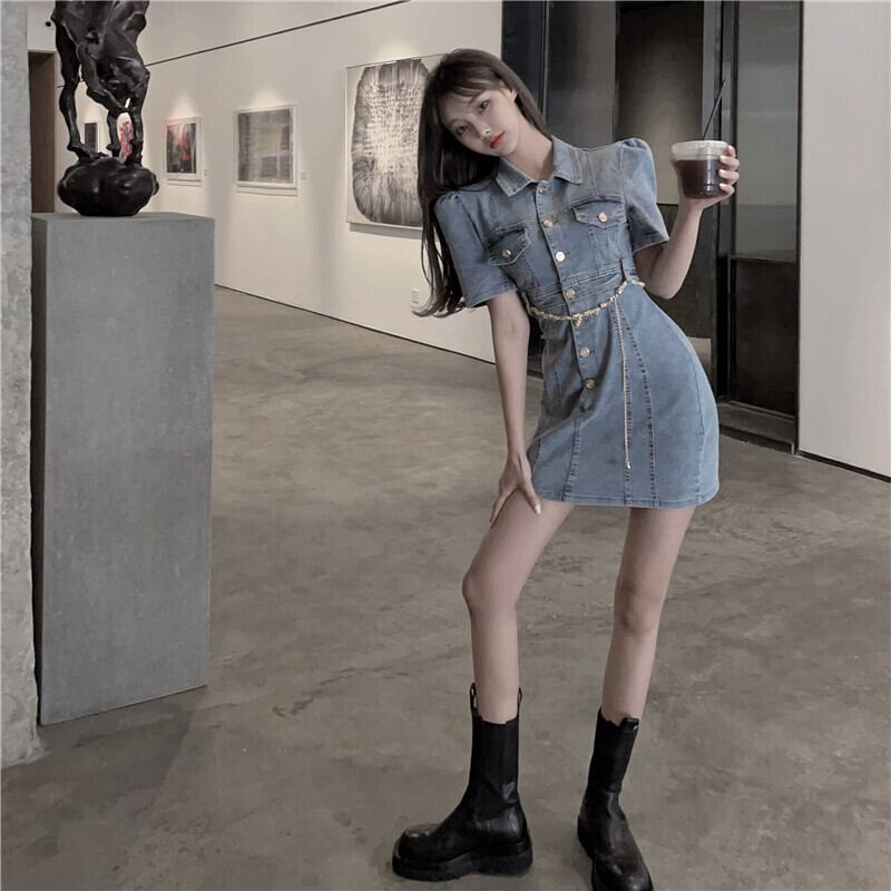 ドレス サマースタンダードショートシャツ スカート ウェストスリム レトロ 夏物 フラワークラフター60853214879