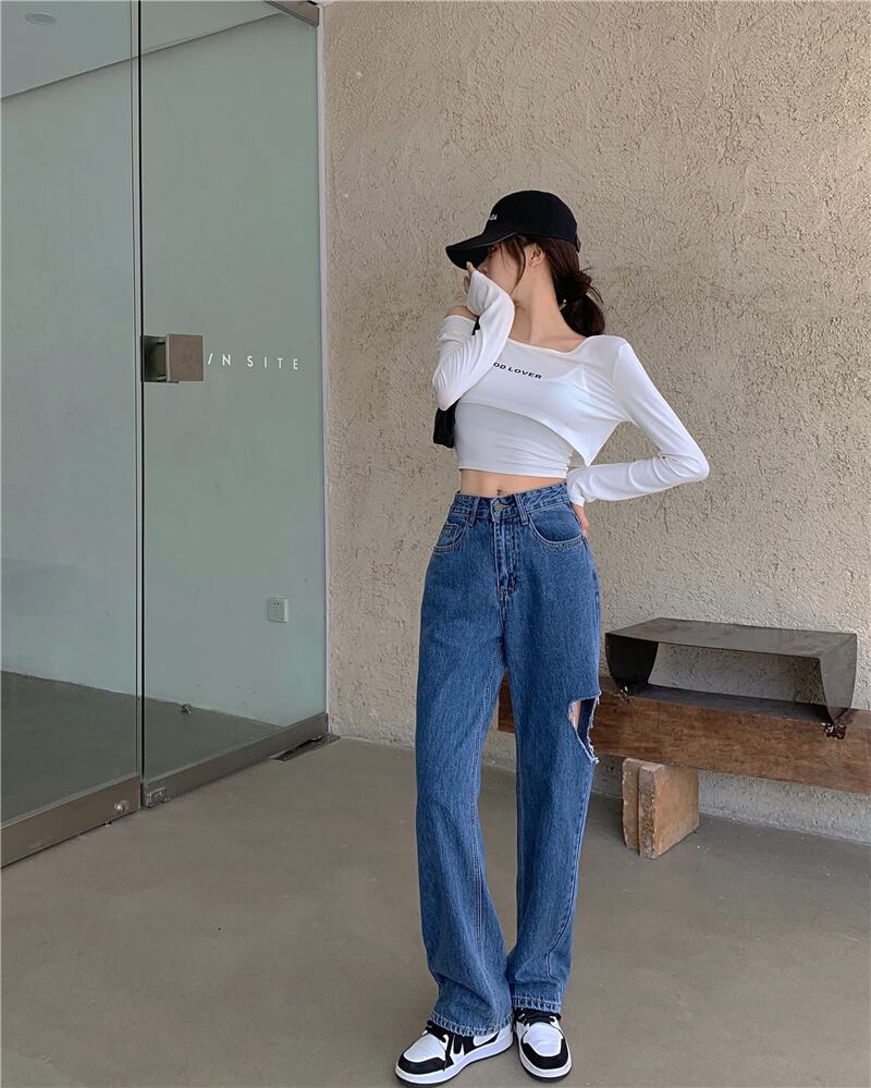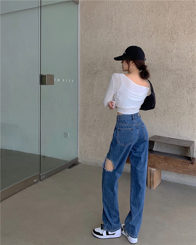 ジーンズ レディースサマースタンダードハイウェストウェストルーズ薄手ロングパンツ レトロ 夏物 フラワークラフター84478254237