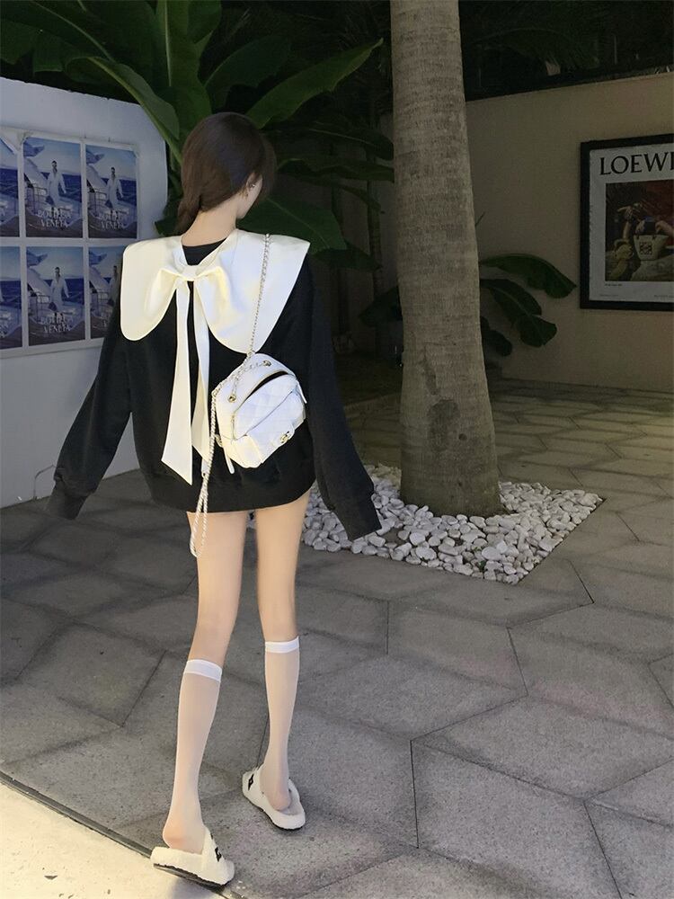 カラーセーター スプリングオータムリボンルーズトップス ロング 大人ガーリー スウィート キュート カジュアル 春物 秋物 フラワークラフター69081675153