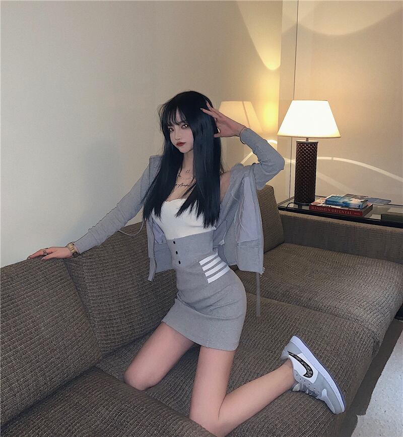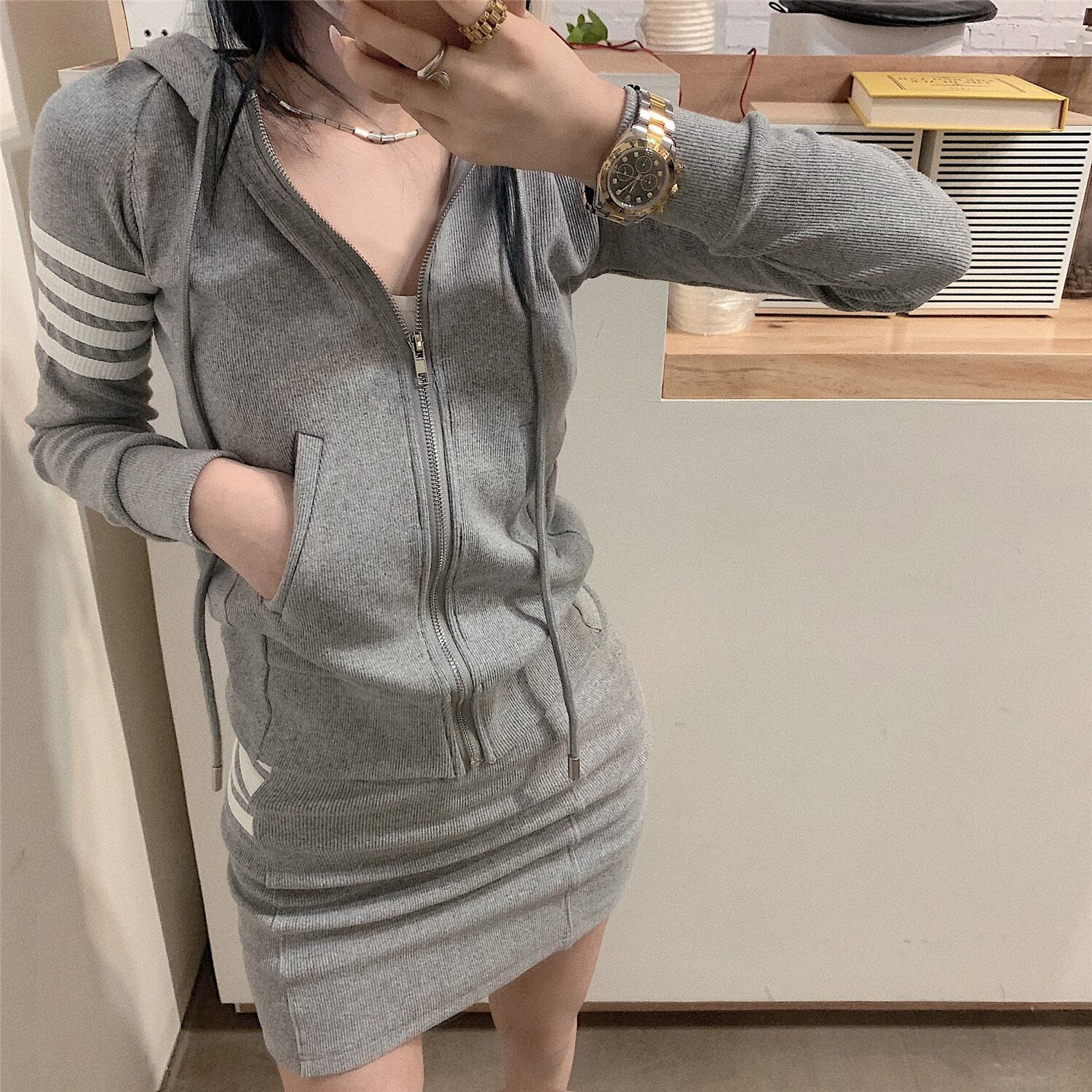 グレーストライプフードセーター ジャケット レディーススプリングオータムスタイルトップス ロング 春物 秋物 フラワークラフター96686601327