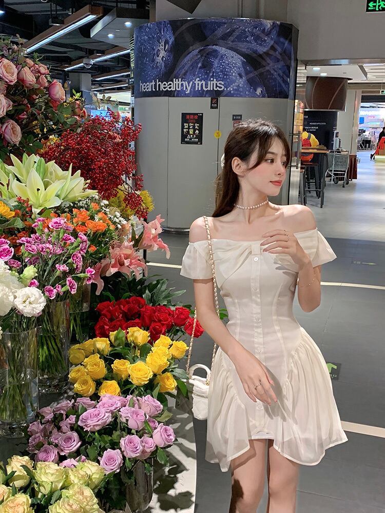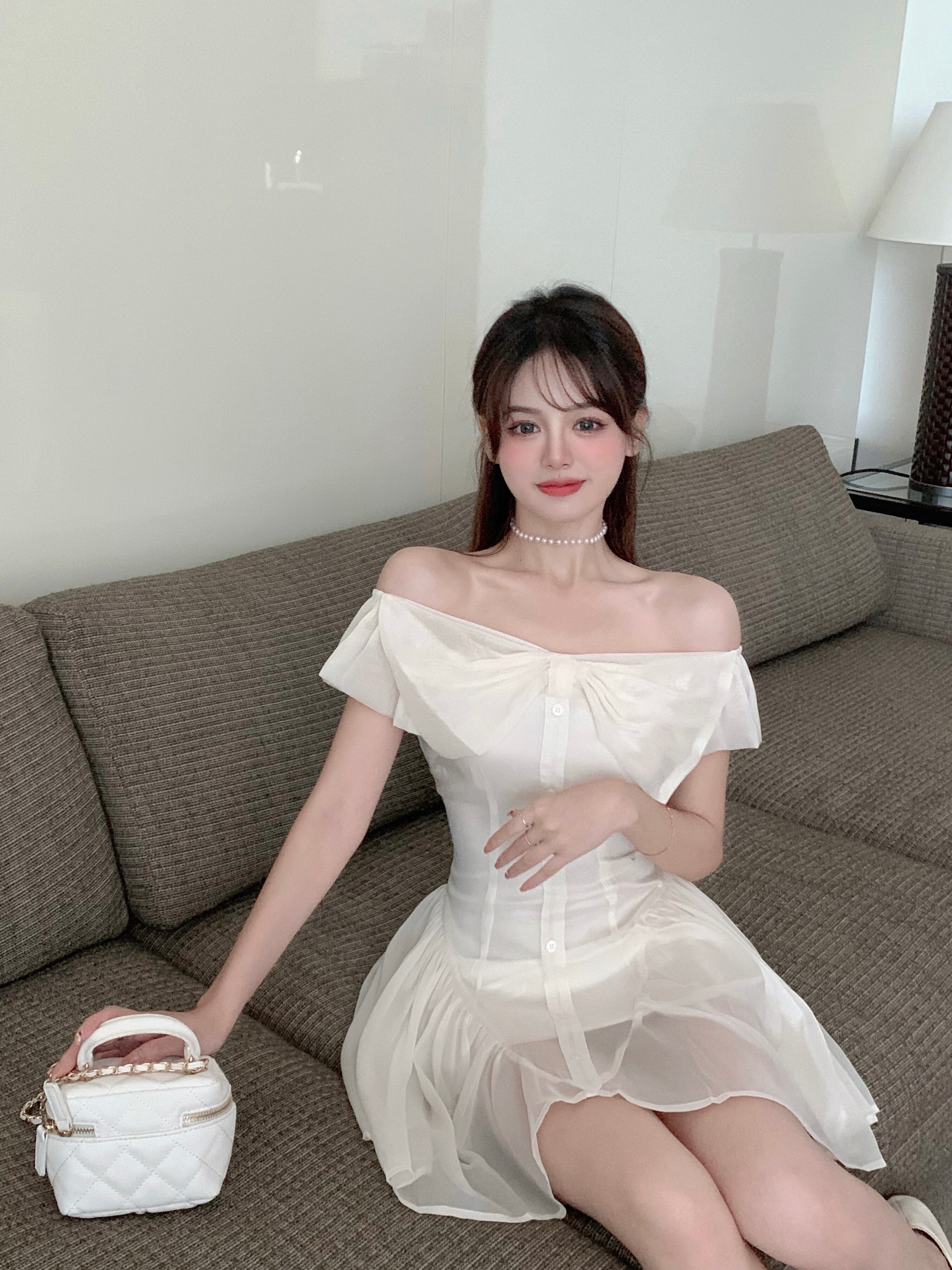 ホワイトリボンドレス サマーストラップレスウェスト薄手スカート 夏物 ピュア フラワークラフター55044415590