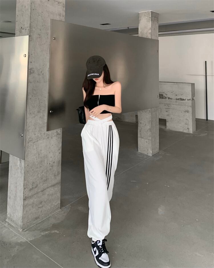 色:ブラックチューブトップシングルピース,グレーチューブトップシングルピース,黒いズボン,白いズボンのワンピース