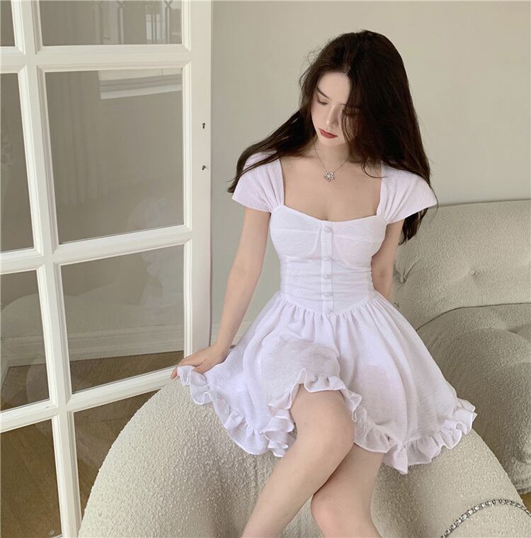 ホワイトドレス サマーショートスカート ウェストAライン 夏物 スクウェア フラワークラフター75427723717