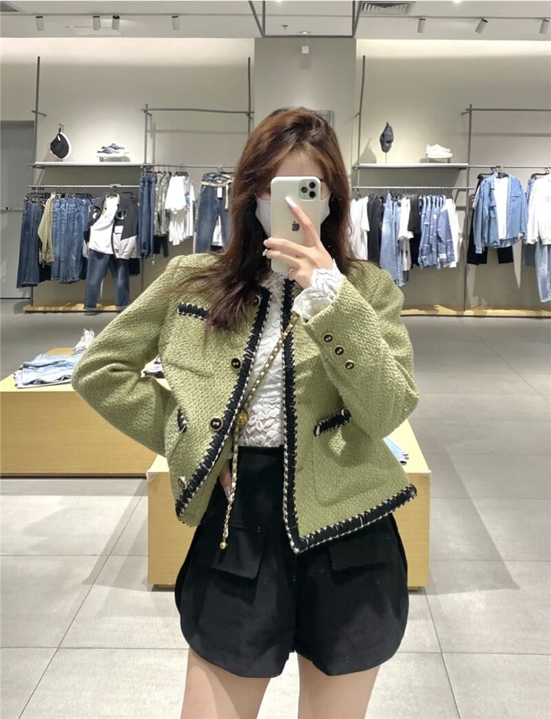 グリーンジャケット スプリングオータムポケットルーズショートトップス ロング 春物 秋物 フラワークラフター24607496974