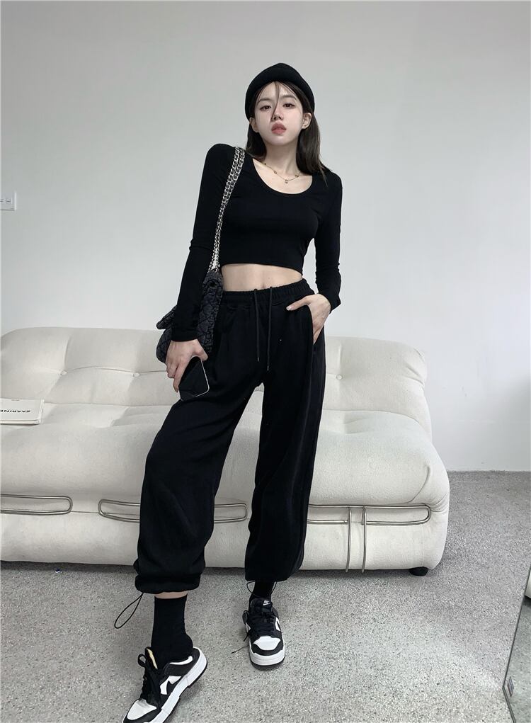 グレーハイウェストウェストパンツ レディースオータムルーズスリムカジュアル コルセット 秋物 フラワークラフター84902147284