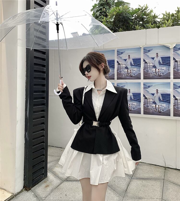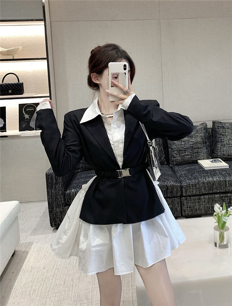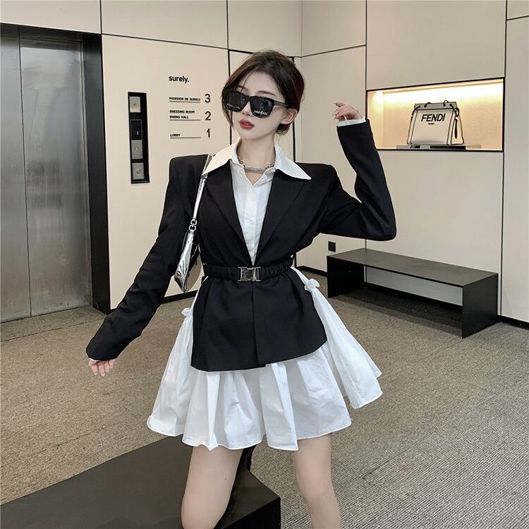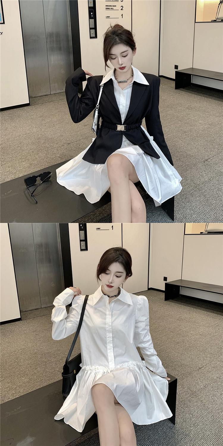 色:黒いスーツのワンピース,白いワンピースワンピース