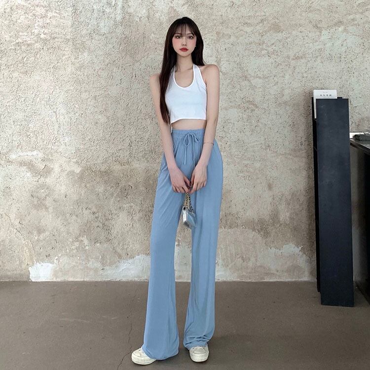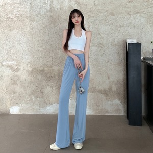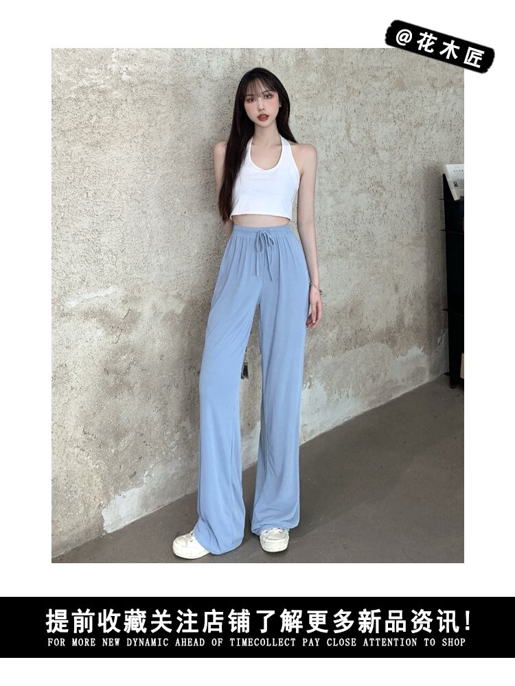 ブルーカジュアルパンツ ルーズサマースリムハイウェストウェストロング 夏物 フラワークラフター31325032544