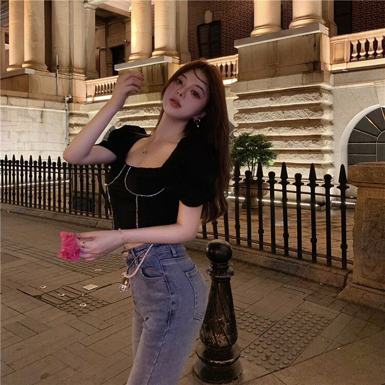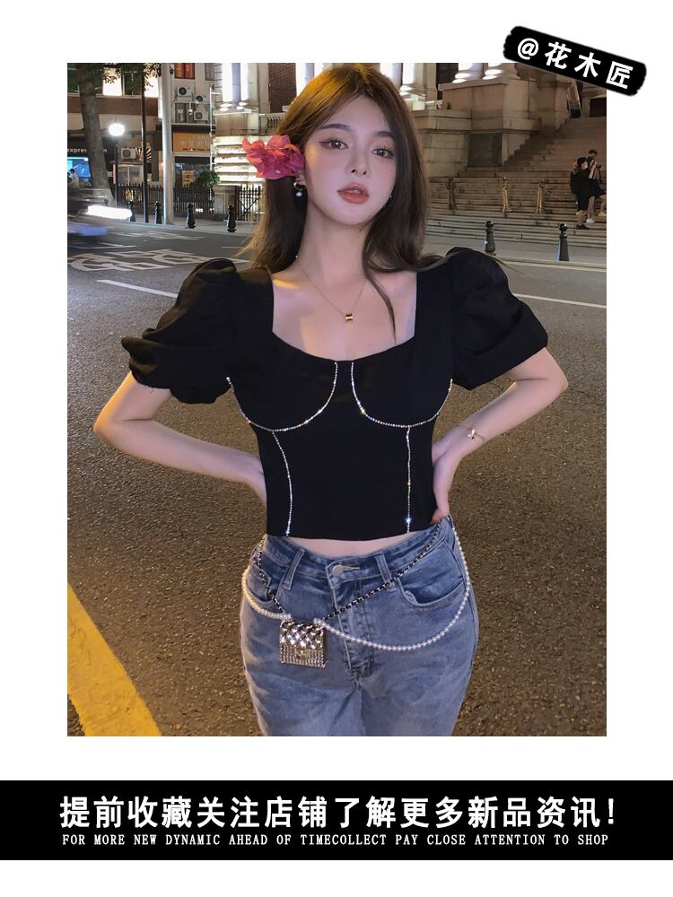 ブラックスリーブシャツ サマースタイルカラーショートトップス ドレス 夏物 スクウェア フラワークラフター81530641546