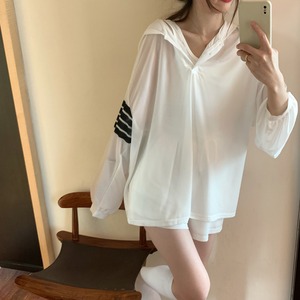 ストライプセーター サマー薄手レッドルーズトップス ロング 夏物 フラワークラフター54436657864