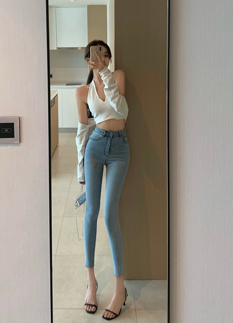 ジーンズ スリムパンツ サマー薄手ハイウェスト 夏物 フラワークラフター74657289108