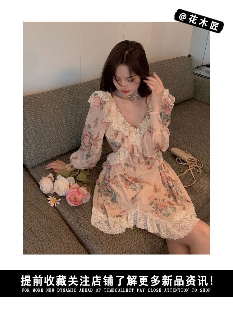 フローラルドレス レディースサマーホルターレースウェストショートスカート ロング 夏物 花柄 フラワークラフター36584440371