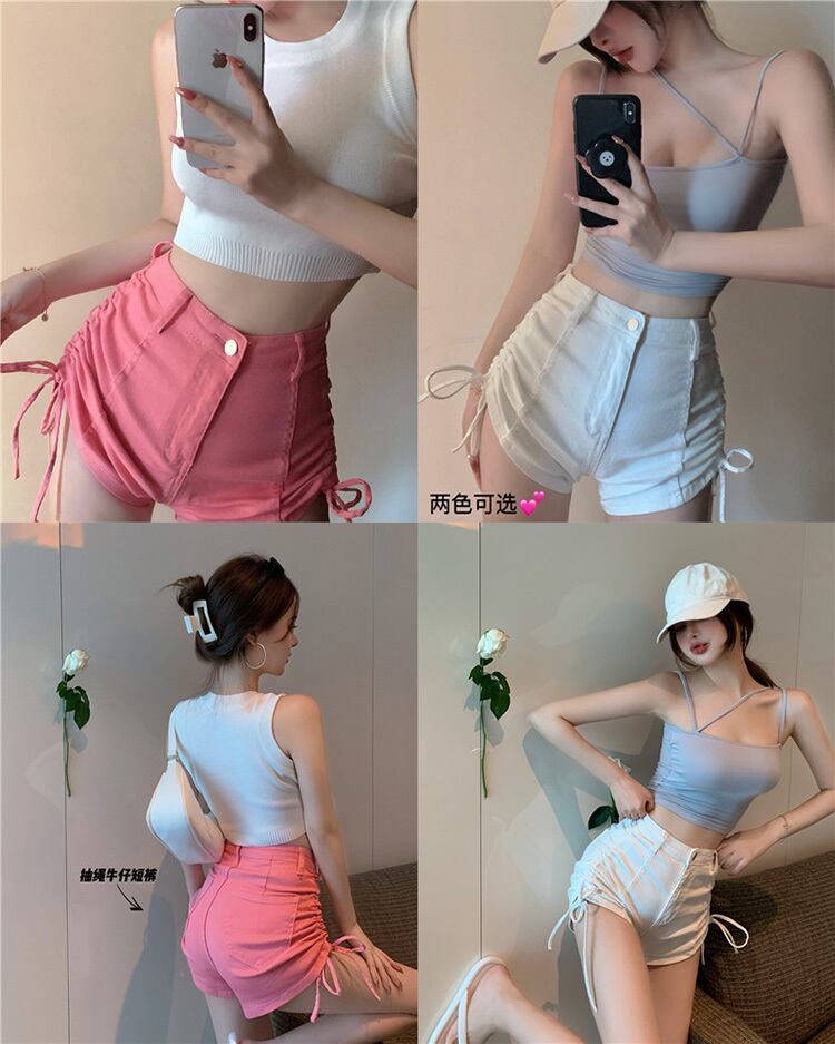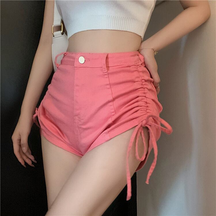 ショーツ サマーギャザーハイウェストウェストワイドレッグパンツ ピンク 夏物 ブルマー ワイドパンツ フラワークラフター1095783200