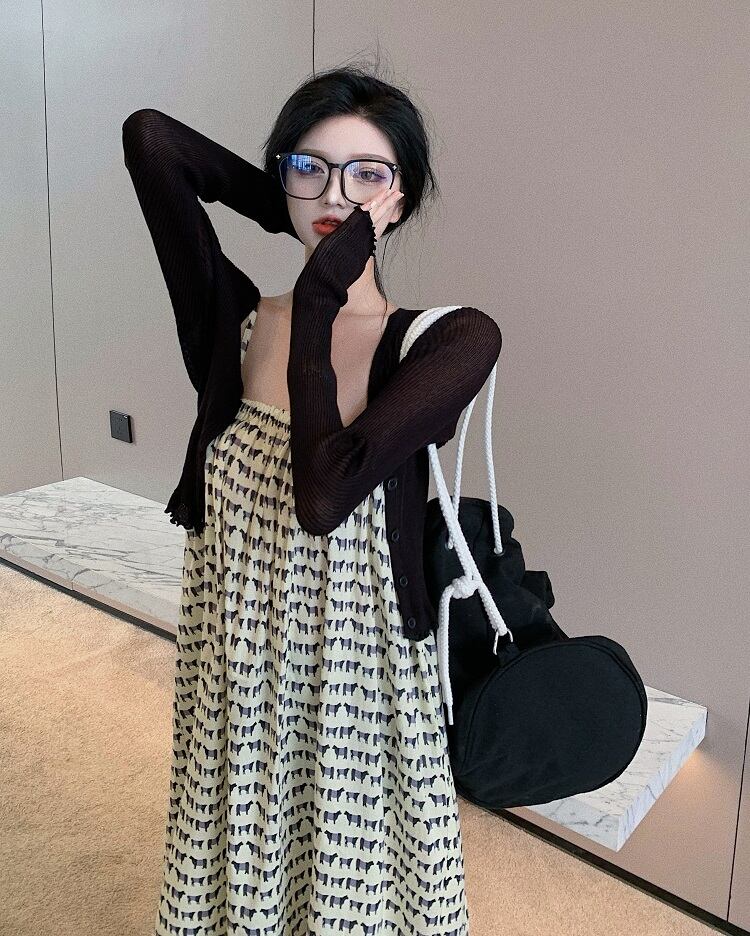 色:ブラックカーディガンワンピース,シングルドレス
