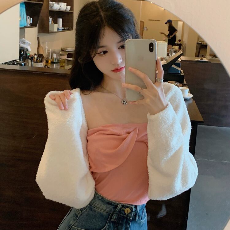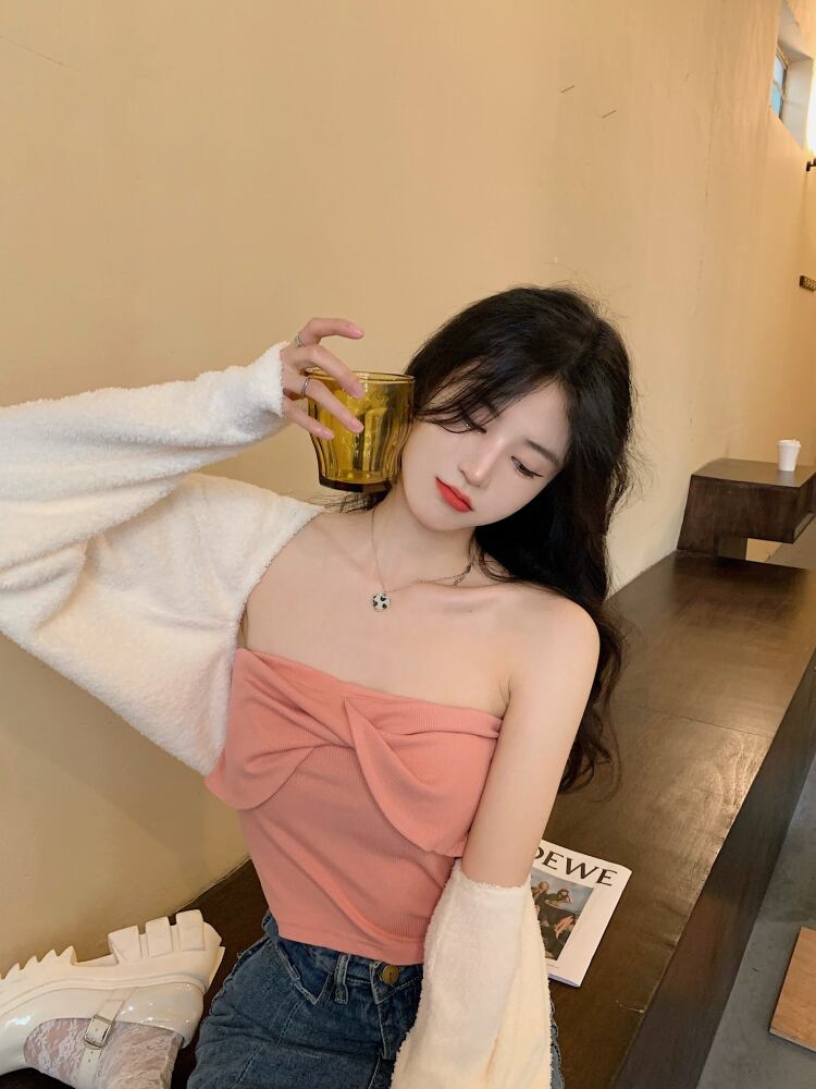 色:ぬいぐるみショール一枚,シングルピンクのチューブトップ
