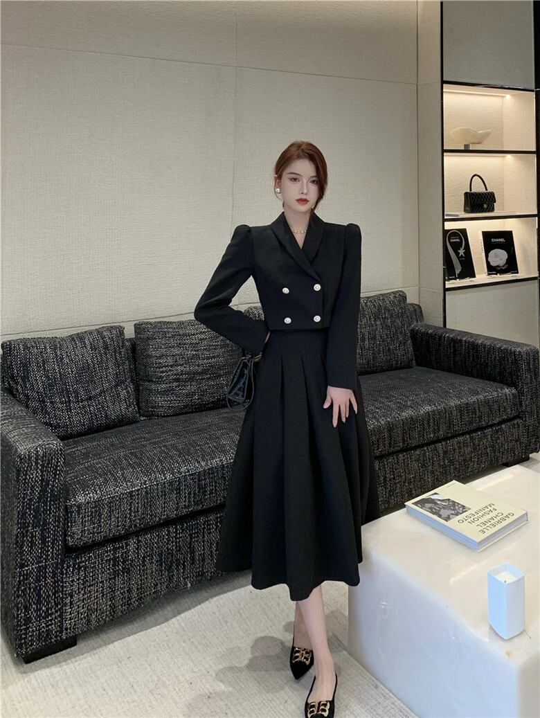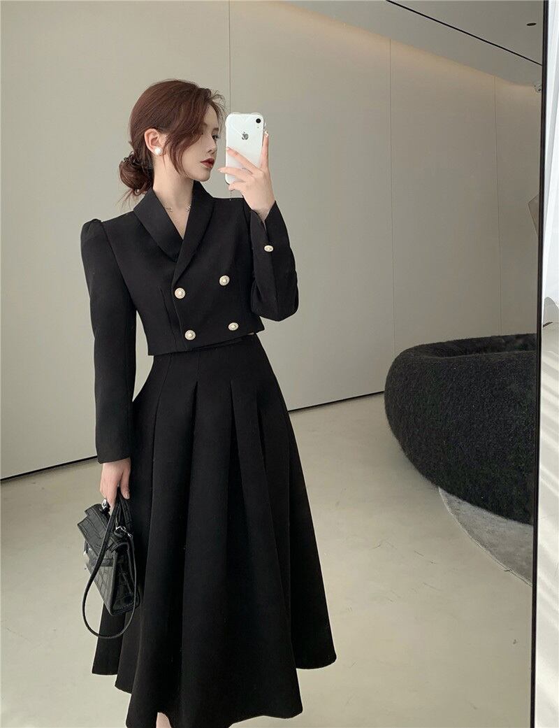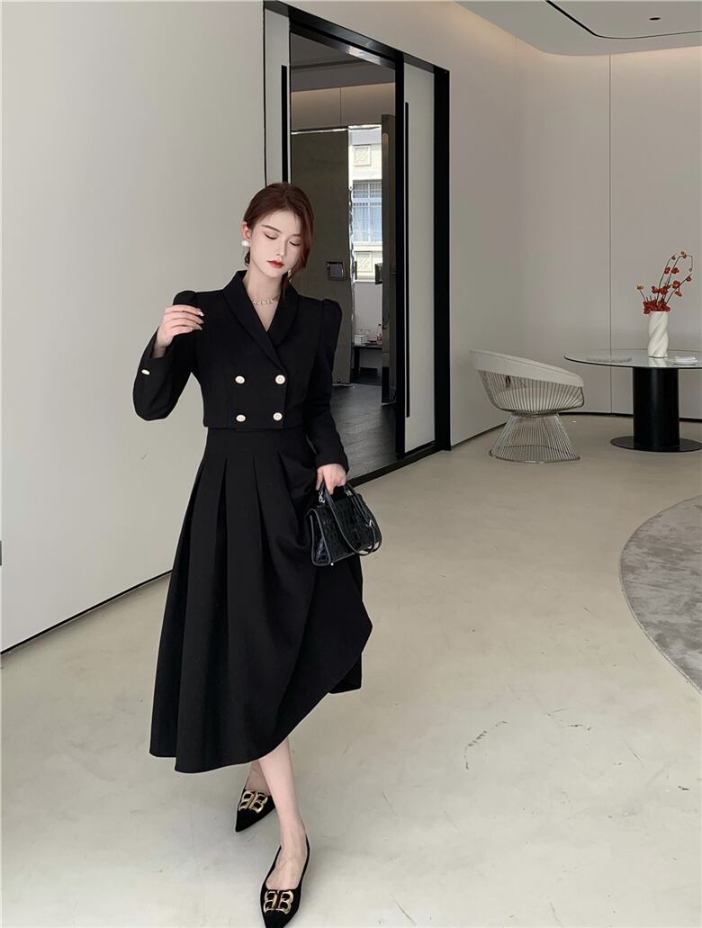 色:ブラックジャケットワンピース,黒スカートワンピース