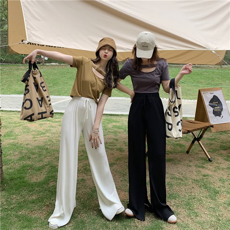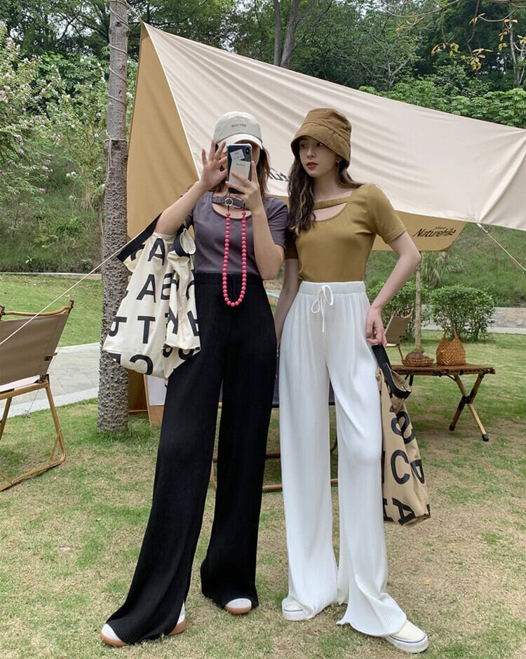 ホワイトパンツ ハイウェストウェストサマールーズ薄手カジュアル 夏物 フラワークラフター56038331481