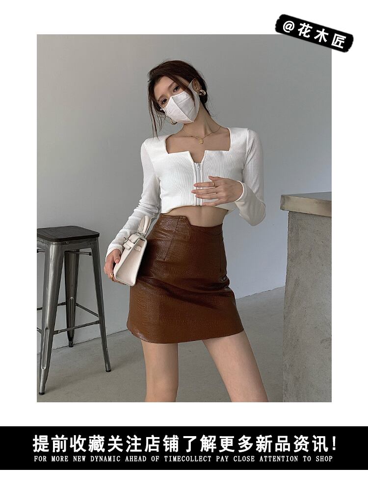 カーキスカート オータムレッドレザーハイウェストウェスト薄手Aラインショート 秋物 フラワークラフター5795615228