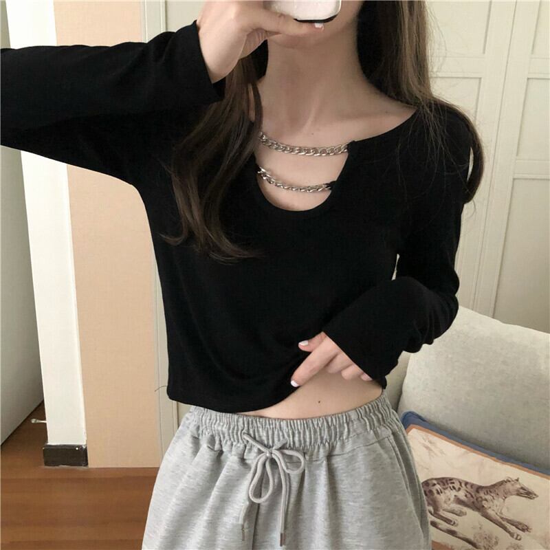 ブラックTシャツ スプリングオータムスリムショートクロップトップ トップス ドレス ロング 春物 秋物 フラワークラフター10007606732