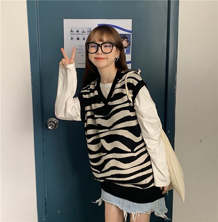 パターンニットレディーススプリングオータムルーズVネックノースリーブ 春物 秋物 フラワークラフター43331588872