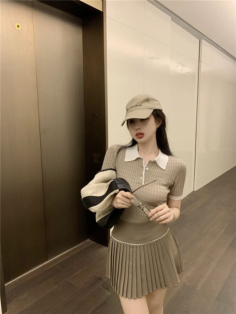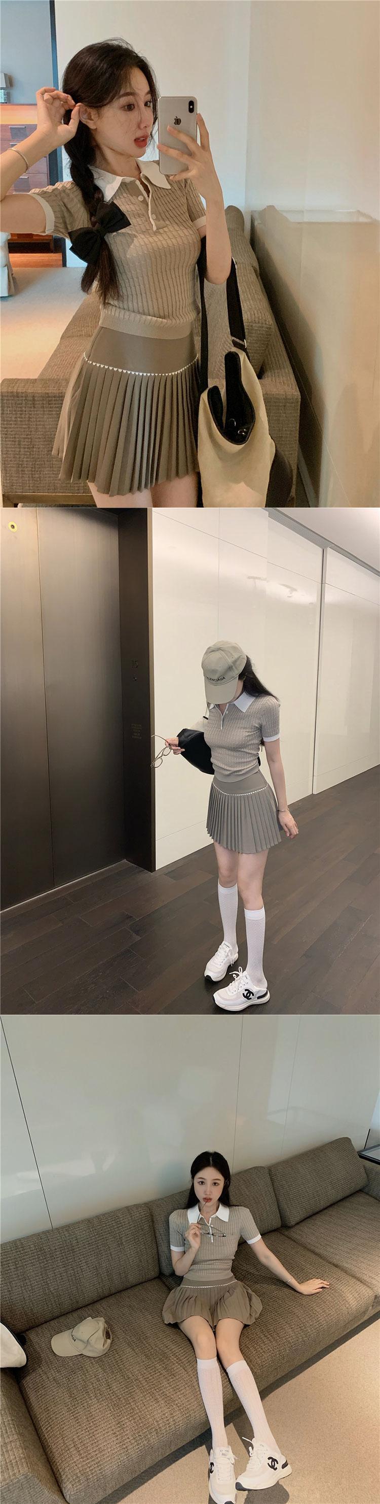 カラーニットTシャツ サマーレッドスリム薄手トップス 夏物 フラワークラフター16154556193