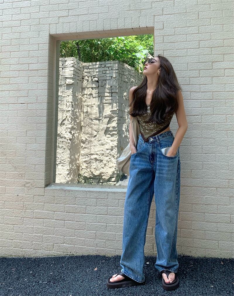色:チューブトップシルクスカーフ一枚,ジーンズ一枚
