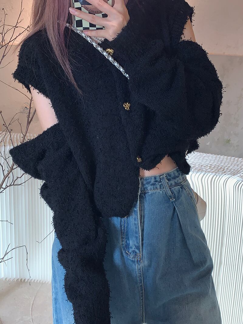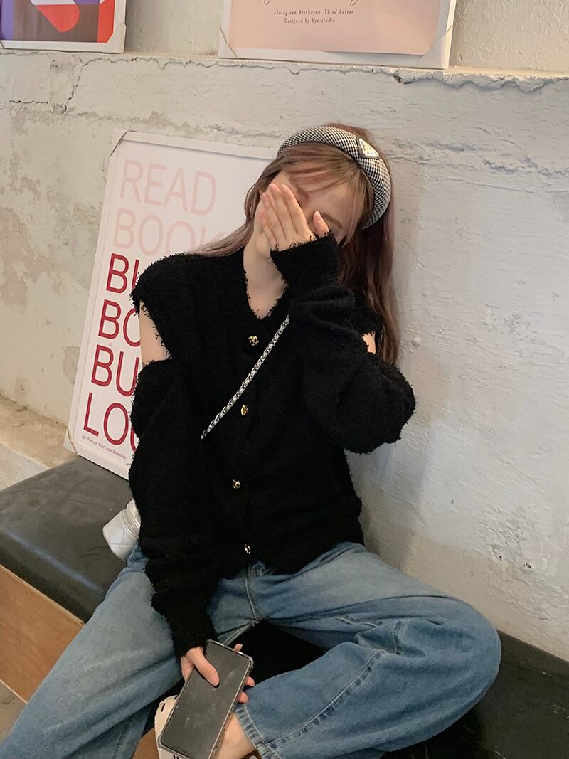 セーター ジャケット スプリングオータムルーズニットカーディガンスタイルクロップドトップス ロング 春物 秋物 フラワークラフター50664739341