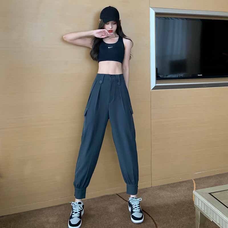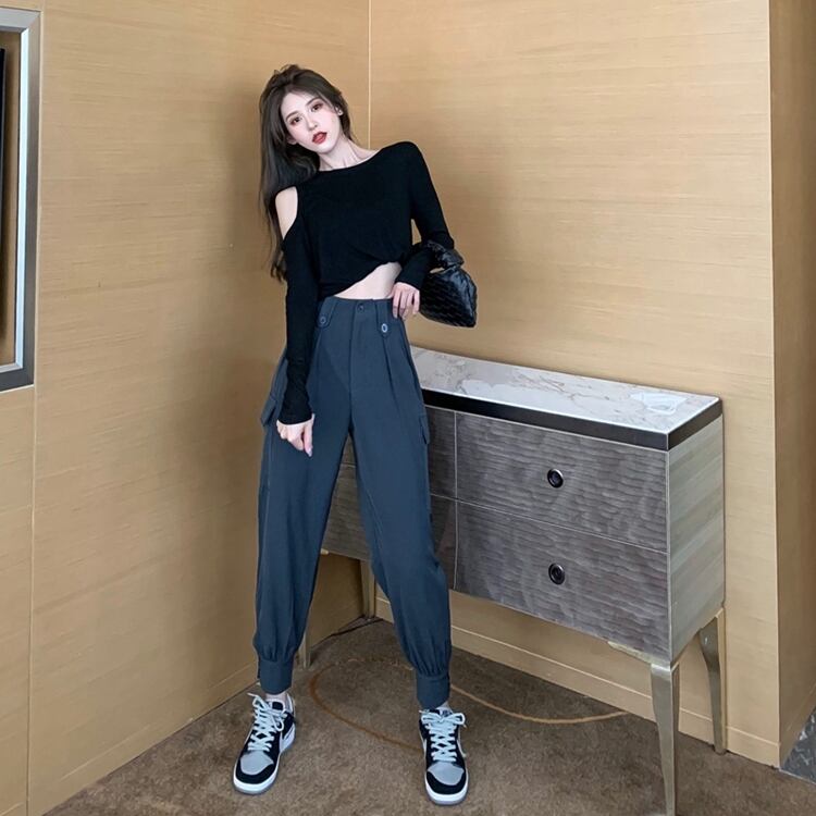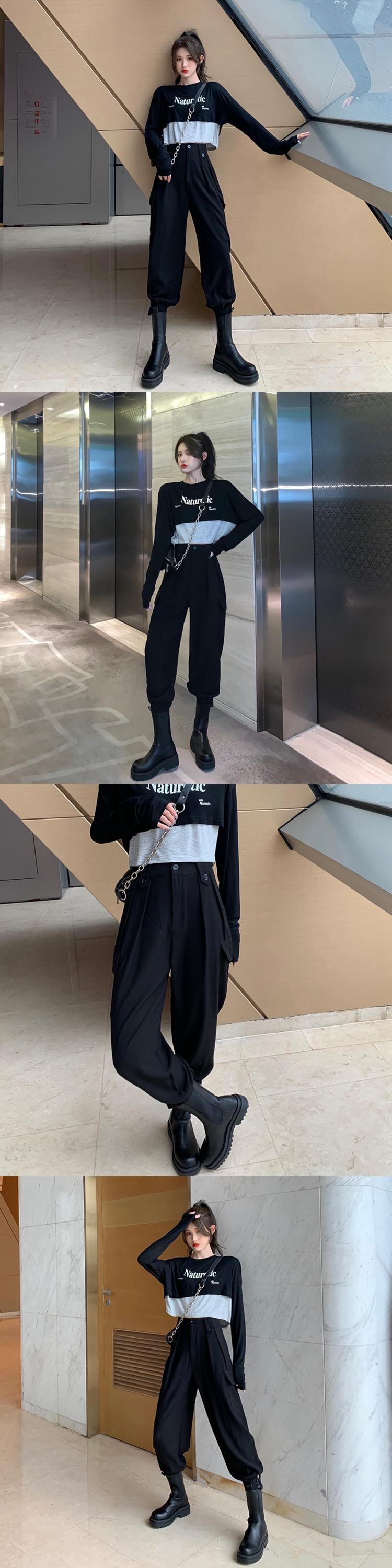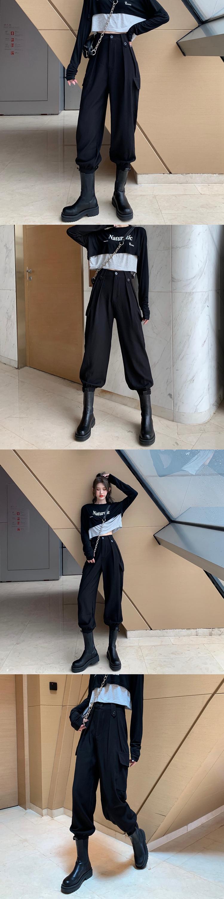 ブラックオーバーオール オータムレギンス スタンダードハイウェスト薄手カジュアルパンツ レトロ 秋物 フラワークラフター68893115040