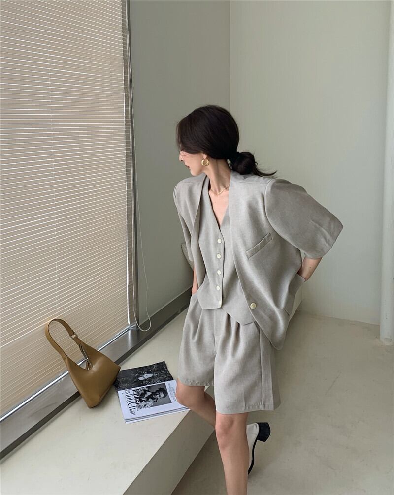 色:ベストワンピース,ショートパンツ,ブレザー一枚