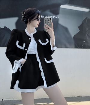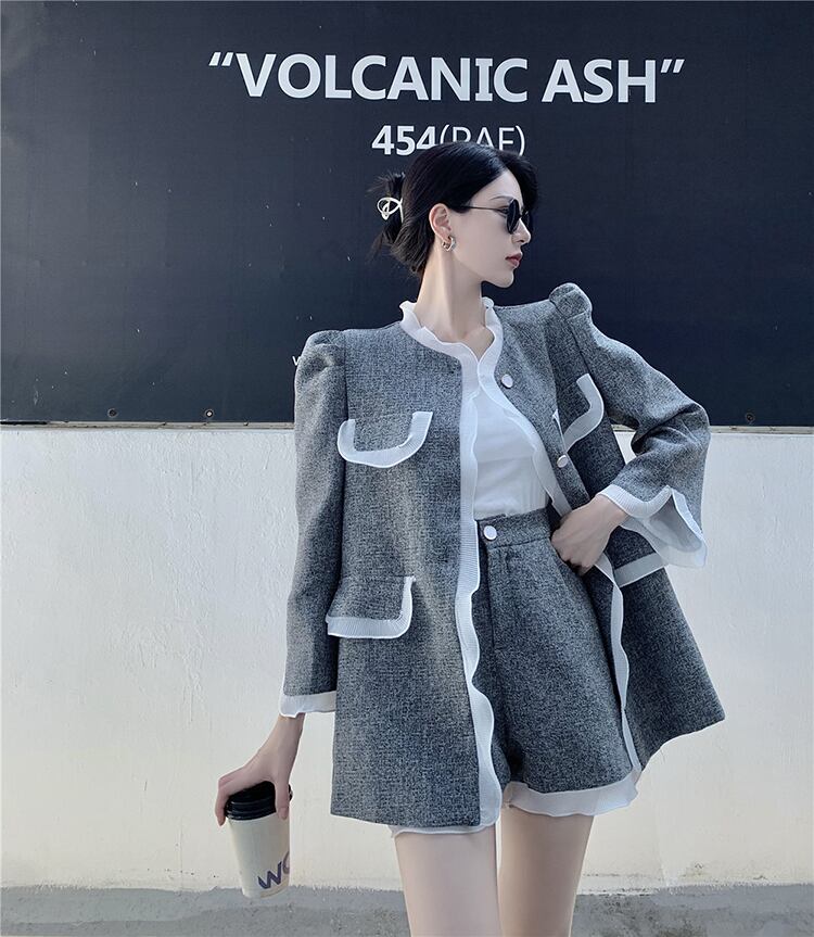 色:グレージャケットシングルピース,グレーのショートパンツ,ブラックジャケットワンピース,ブラックショーツワンピース