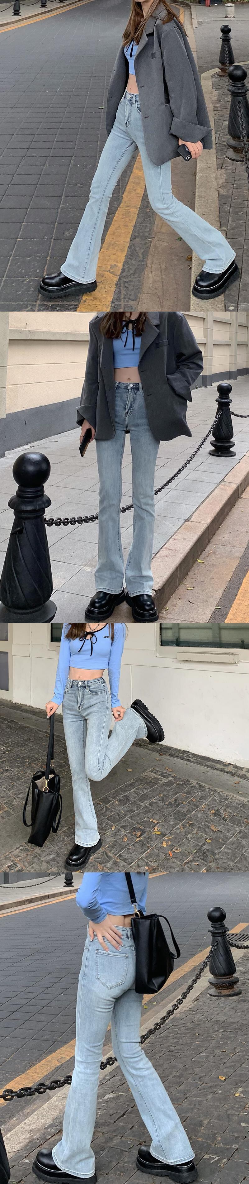 ダークブルージーンズ スリムスプリングオータムハイウェストパンツ レッド 春物 秋物 フラワークラフター49998342948