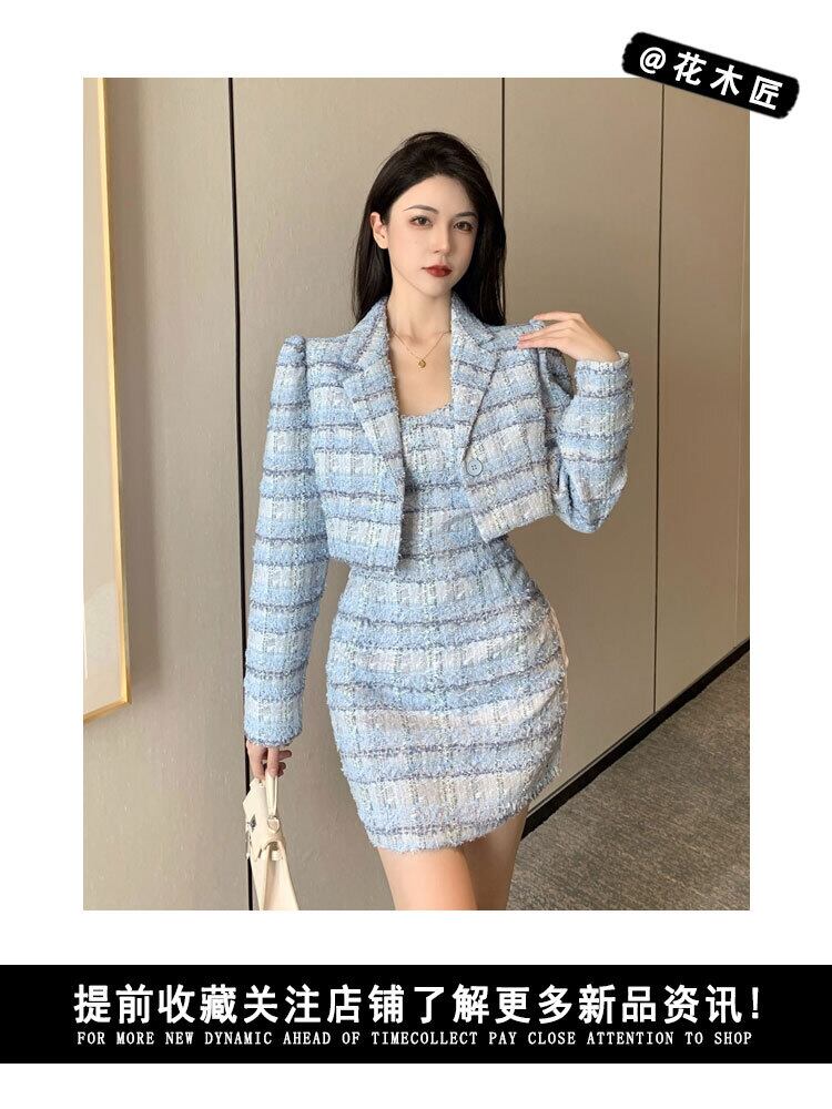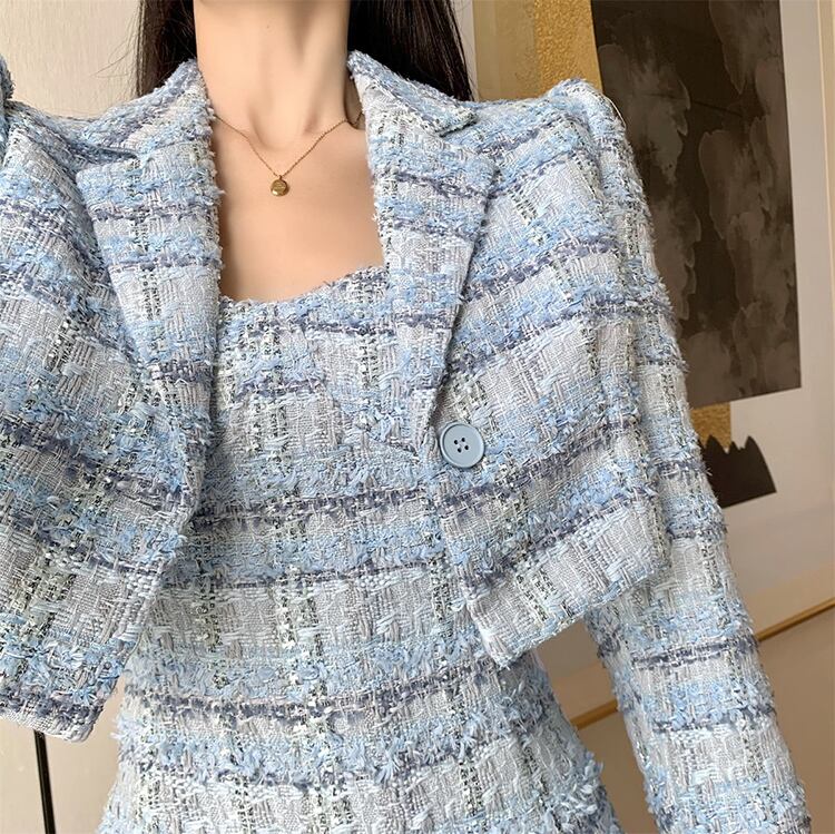 レッドブルー格子柄ジャケット スプリングオータムショート ロング 春物 秋物 フラワークラフター26162082902