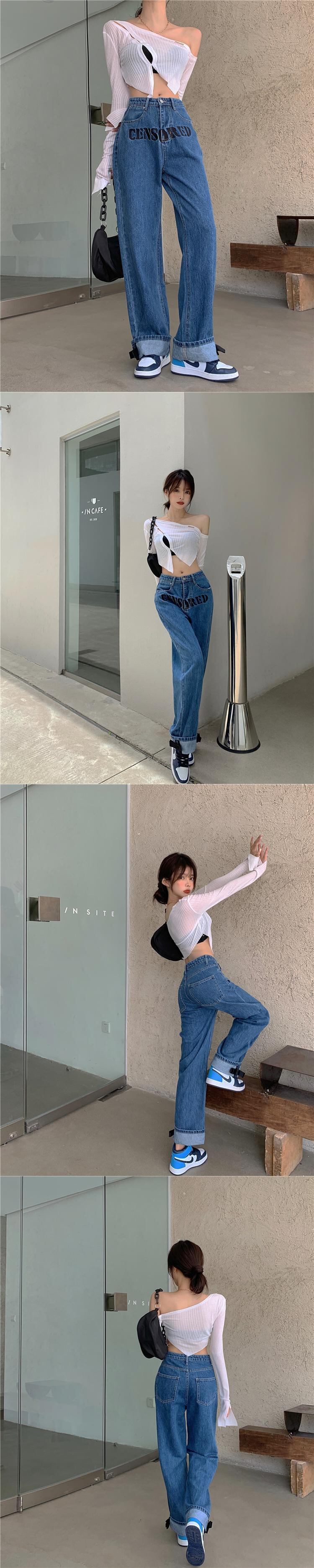 ジーンズ ルーズワイドレッグパンツ サマーリボンウェスト レッド 刺繍 夏物 ワイドパンツ フラワークラフター52618784374