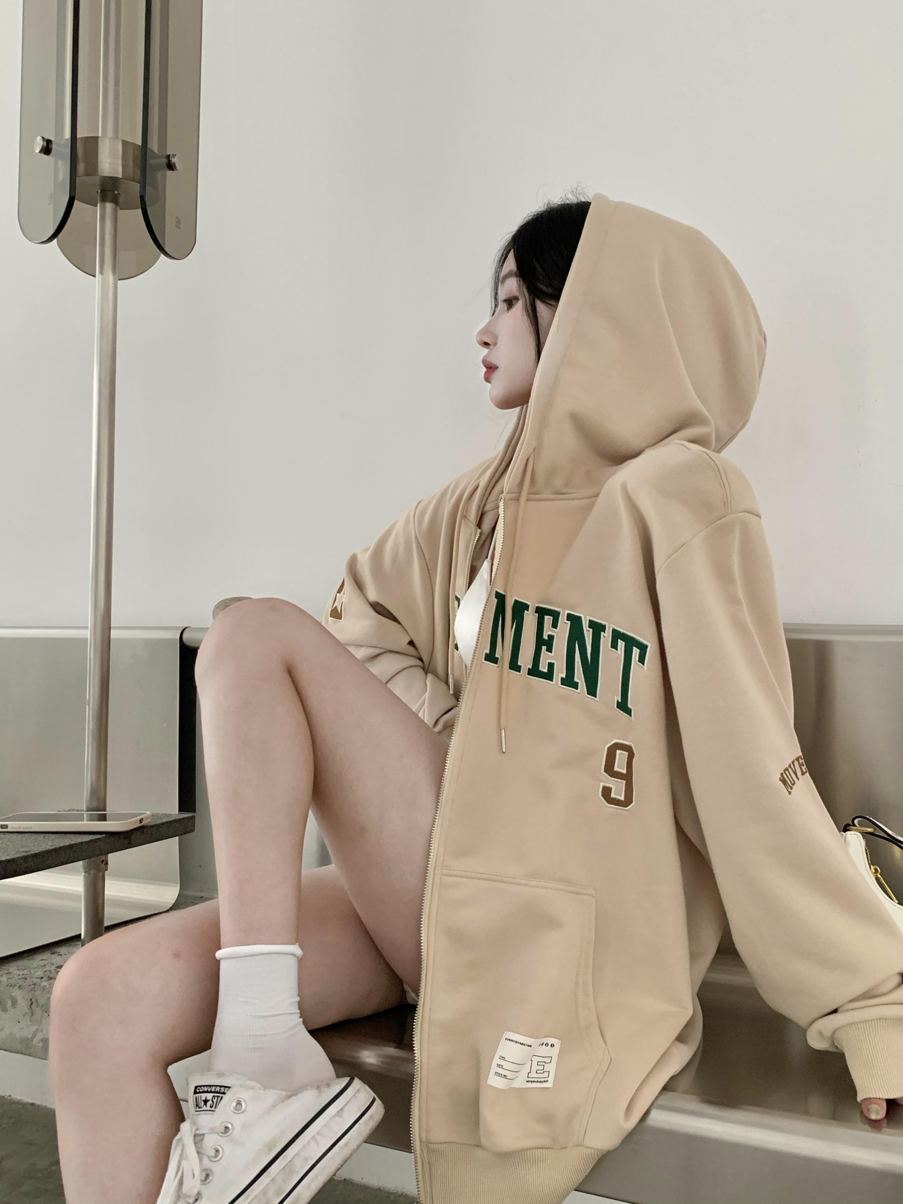 フードセーター ジャケット レディースルーズスプリングオータムトップス ロング 春物 秋物 フラワークラフター6487890798